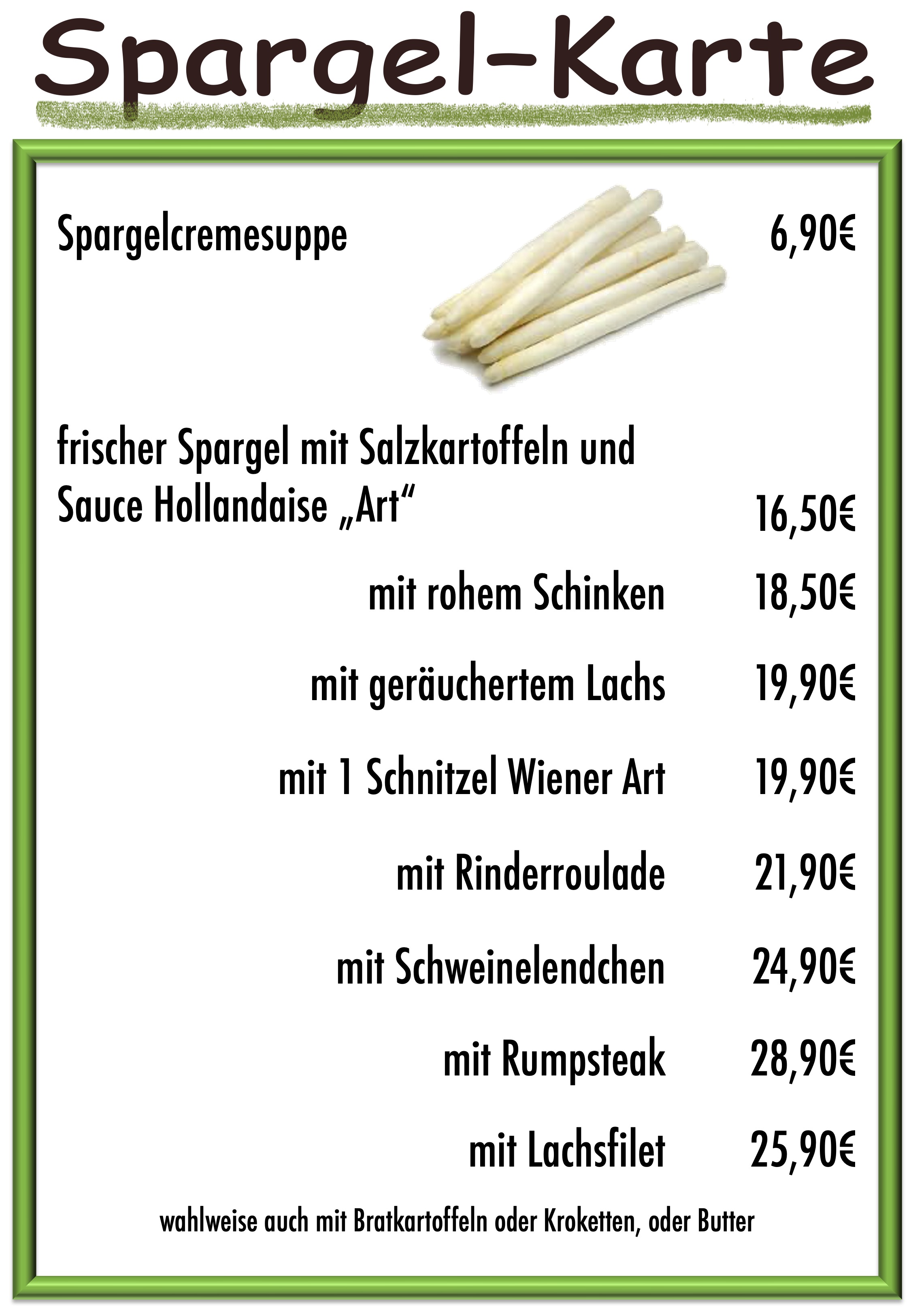 Es gelten immer die aktuellen Preise, die in der Gaststube ausliegen.